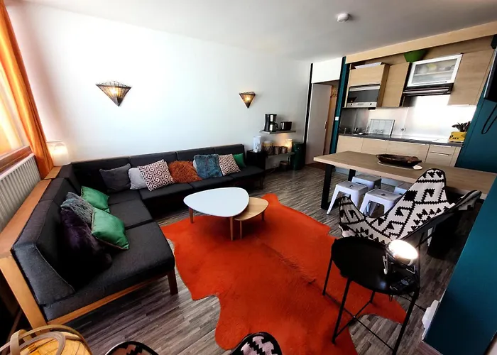 Skilift Quillis befindet sich in La Plagne-Tarentaise, in ungefähr 3 km Entfernung von diesem 45 m^2 großen Apartment. Von dieser Unterkunft aus ist Skilift Colosses in 25 Minuten zu Fuß erreichbar.